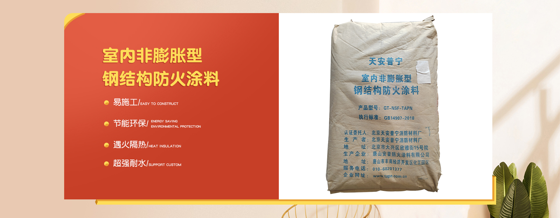 北京天安普寧消防材料廠是一家從事防火涂料二十多年生產企業(yè),企業(yè)集研制開發(fā)、生產銷售及各類防火涂料施工為一體。 企業(yè)員工總數(shù)100人,其中管理人員20人,科研人員10人,銷售50人,其他員工十多人。企業(yè)生產用地面積2000平方米左右,辦公用地面積1000平方米。擁有先進的生產設備20多臺,年生產量10000余噸。 企業(yè)擁有一支高學歷、資歷深的研發(fā)隊伍,以科學的管理,先進成套的生產流水線設備及完善的產品質量檢驗措施,開發(fā)出TAPN系列防火涂料產品,可以滿足于各類建筑工程中不同基材、不同技術要求的防火保護,天安普寧系列防火涂料全部經過《國家消防及阻燃產品質量監(jiān)督檢驗中心》檢驗,理化性能合格,防火性能高,通過《應急管理部消防產品合格評定中心》認證并獲得《消防身份信息標識》。 企業(yè)結合多年的工程施工實踐經驗,培養(yǎng)了一支專業(yè)有素、經驗豐富、高質量、效率高的防火涂料施工隊伍,可承攬各類高層、多層、大跨度廠房及網(wǎng)架鋼結構防火涂料噴涂施工服務。 企業(yè)始終為用戶全心全意服務,不斷滿足各建設單位的要求,共同為我國的建筑消防事業(yè)作出更大的貢獻,衷心感謝新老客戶的支持,全體員工熱情歡迎廣大用戶的光臨惠顧。